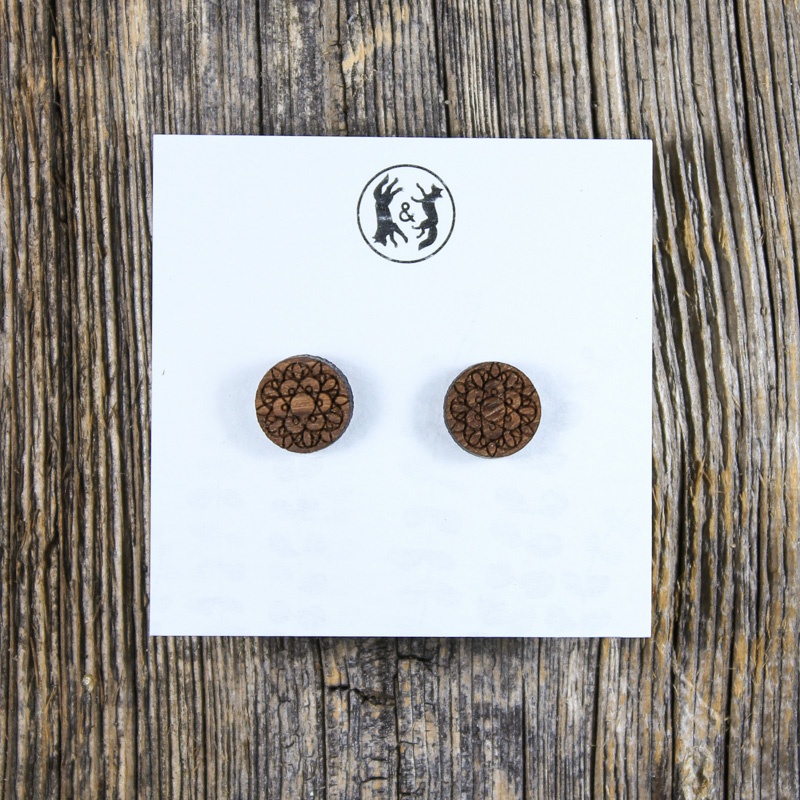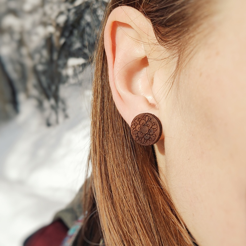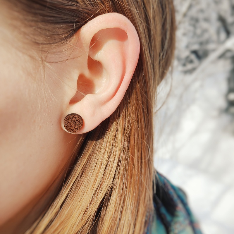 Uhani iz orehovega lesa, zaščiteni z lanenim oljem.