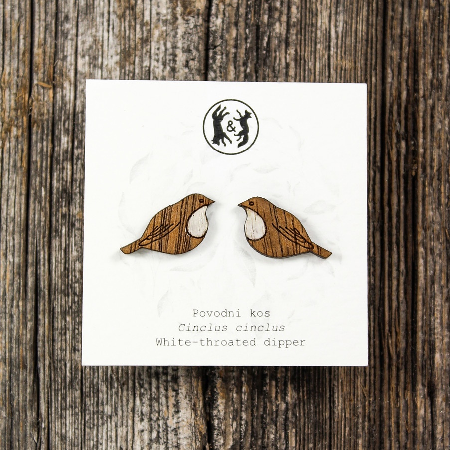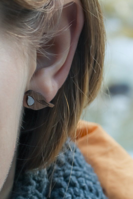 Walnut wood earrings,  hand painted and protected with lacquer.