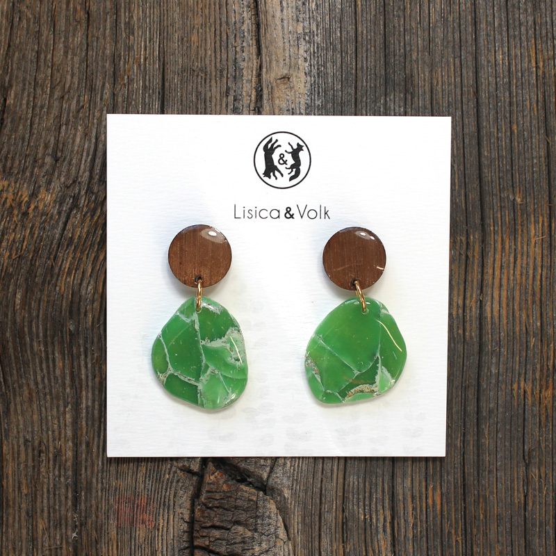 Uhani iz orehovega lesa in polimerne gline.