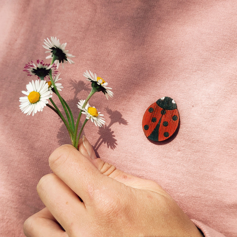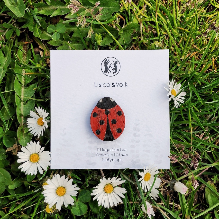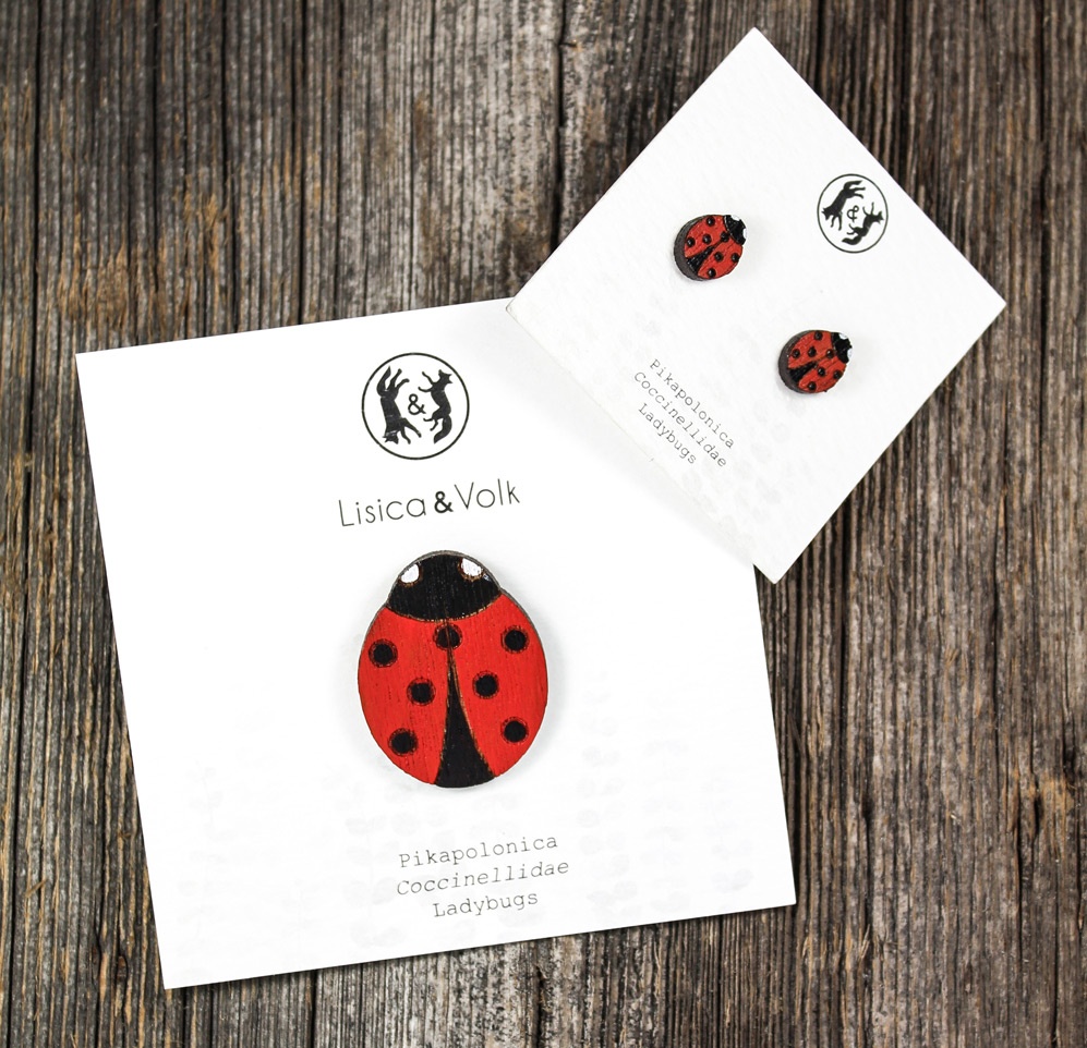 Uhani iz orehovega lesa, ročno poslikani in zaščiteni z lakom.