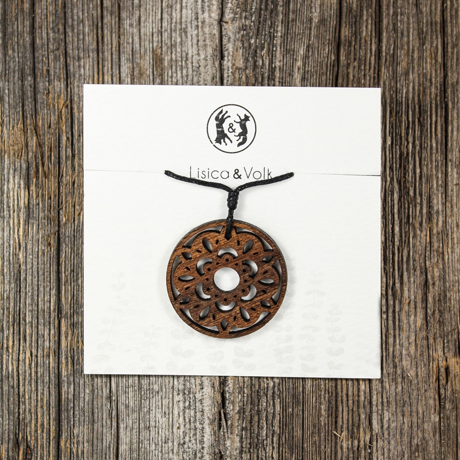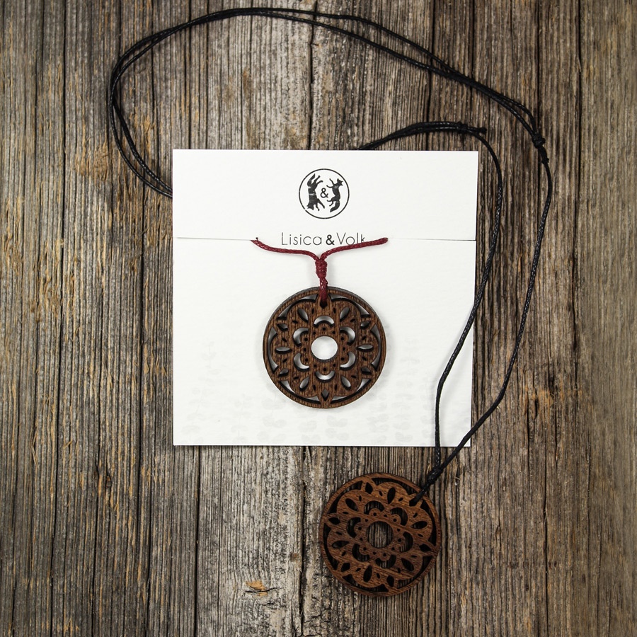 Ogrlica iz orehovega lesa, zaščitena z lanenim oljem.
