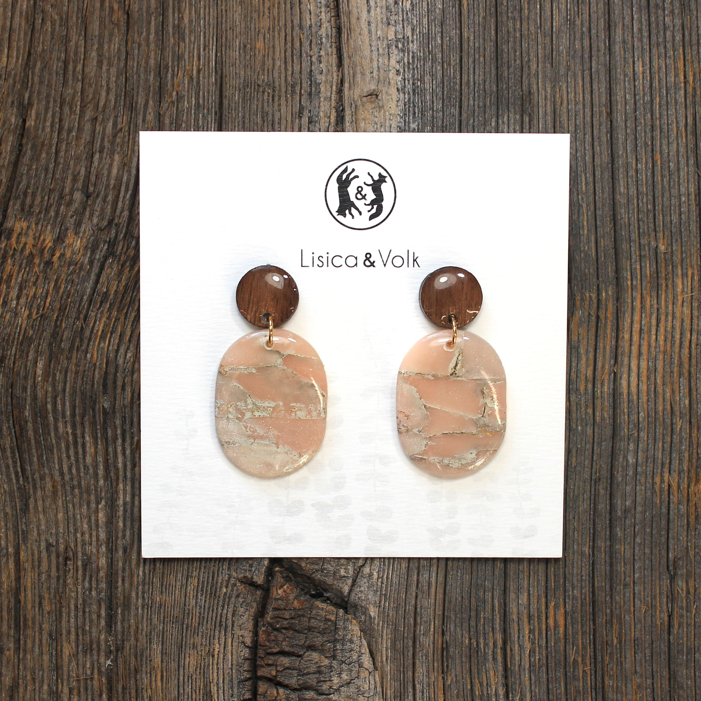 Uhani iz orehovega lesa in polimerne gline.