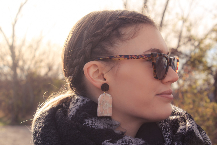 Rose okno | Les in marmor | Izjavni uhani