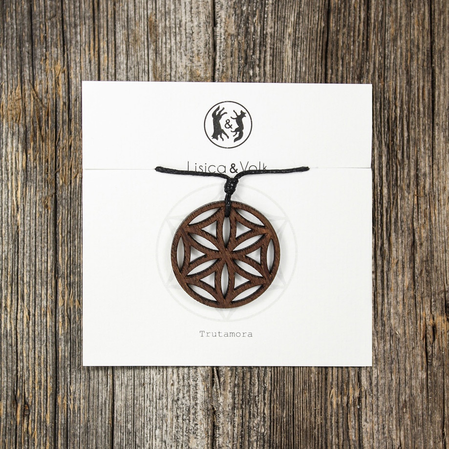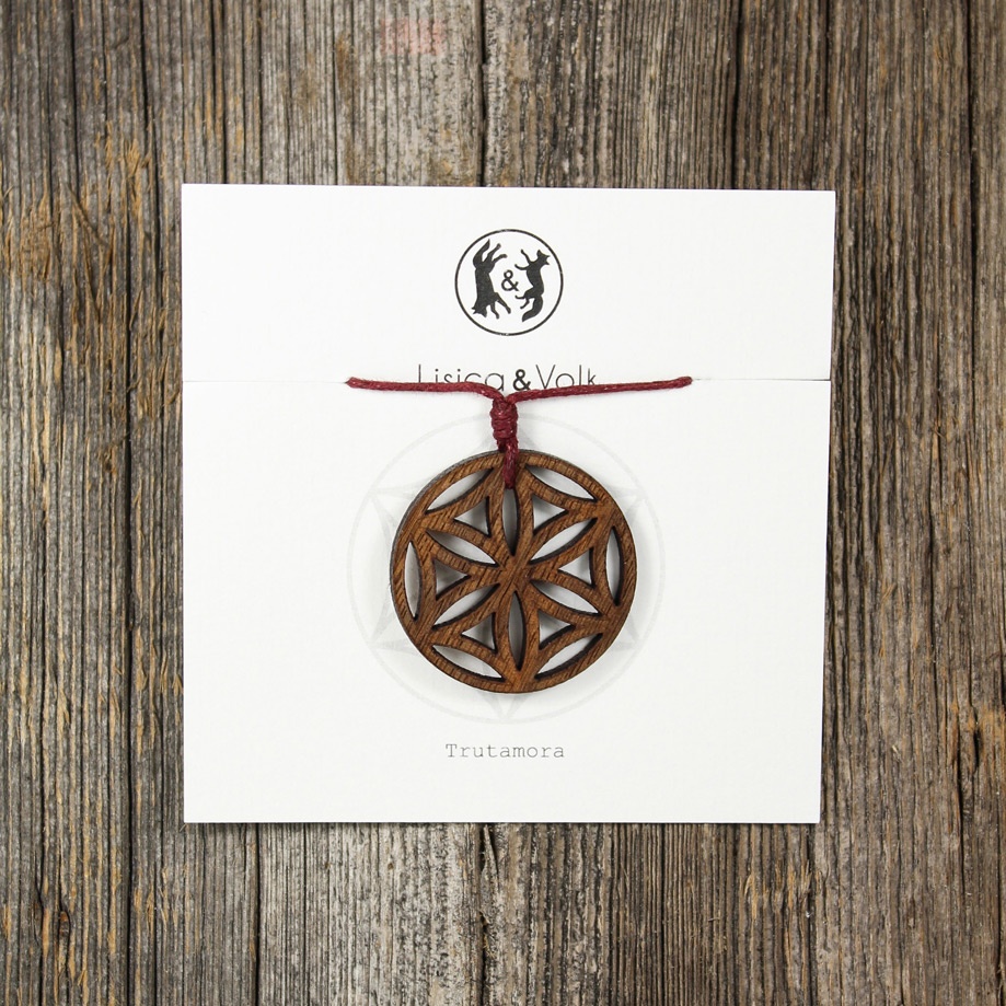 Ogrlica iz orehovega lesa, zaščitena z lanenim oljem.